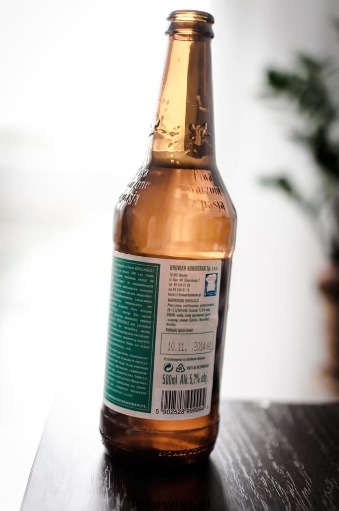 Warmińskie Rewolucje to piwo z dobrze znanego browaru Kormoran. Przy pierwszych oględzinach na uwagę zasługuje adnotacja znajdująca się na etykiecie „lager z odwrotnym chmieleniem”. Nie jestem piwowarem, ale to całkiem interesujący zabieg, o którym można przeczytać na drugiej stronie etykiety.