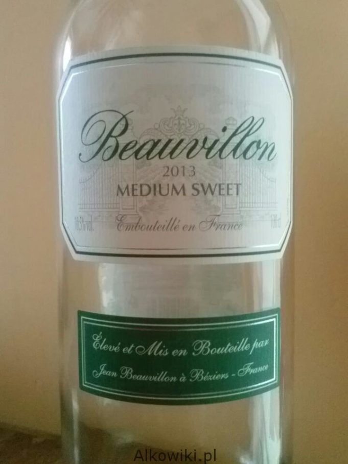 Wino półsłodkie, francuskie – Beauvillon zaprezentowane na zdjęciu jest białe, półsłodkie. Barwa nieróżniąca się niczym od innych białych win. Nie jest najgorsze, ale już kiedyś przyznałam, że zwolennik win półwytrawnych nie oceni obiektywnie wina półsłodkiego, ale cóż – prezentu się nie wybiera.
